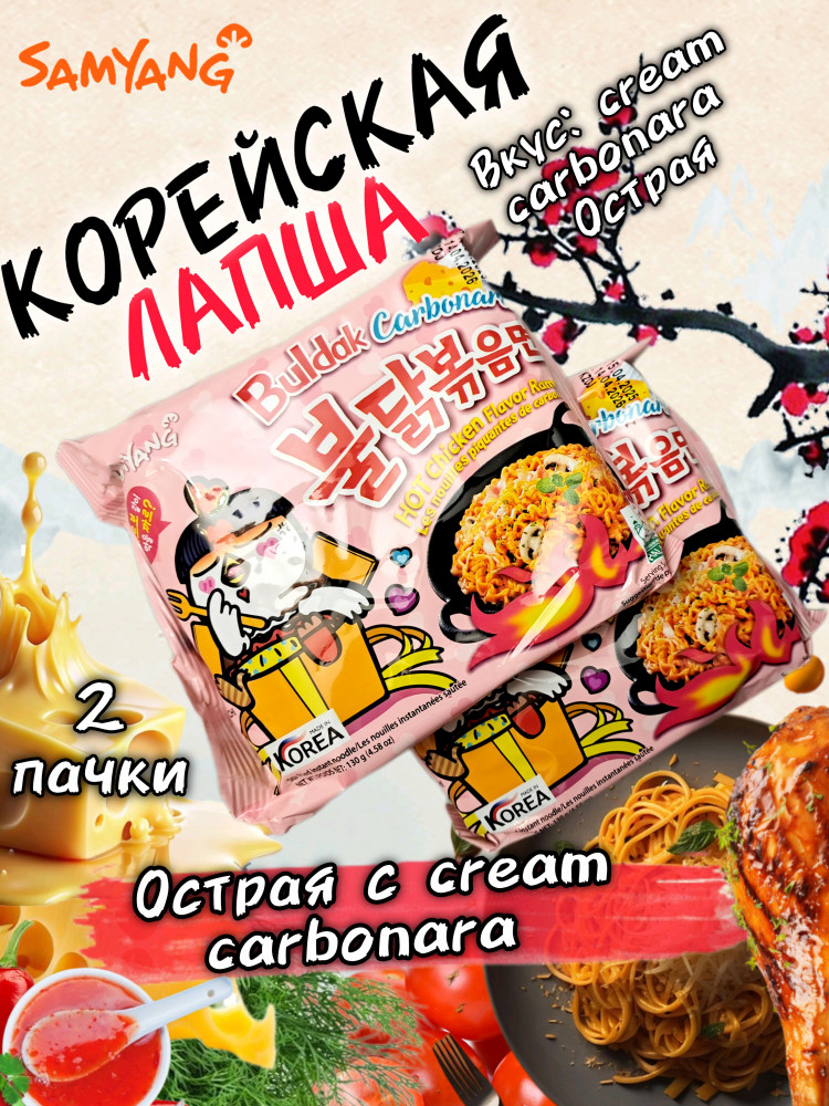 Samyang Набор лапши быстрого приготовления острой со вкусом карбонары «Buldak»