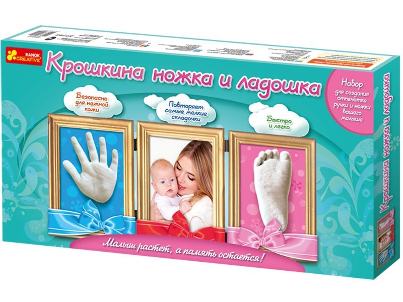 Ranok Creative Набор для создания отпечатка «Крошкина ножка и ладошка»В данный момент этот товар отсутствует в продаже. Возможно, у нас найдется аналогичный или похожий товар здесь. «Крошкина ножка и ладошка» – это незабываемый подарок для родителей малыша. Он сохранит память о первой улыбке, коротких долгожданных словах — мама-папа, первом неуверенном шаге малыша в такой большой и еще неизведанный мир. Отпечаток ручки вашего ребенка станет настоящей семейной реликвией и потрясающим сувениром. |