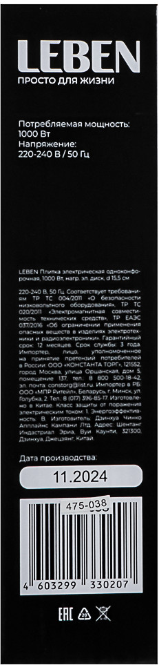 Leben Плита электрическая-30% +223