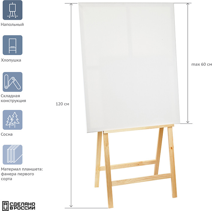 💳 Оплатить за товар можно при получении 🇰🇿 Есть бесплатная доставка по Казахстану от 1 дня 🎁 Копите бонусы с каждой покупки Серия: Студия Напольный мольберт хлопушка Гамма «Студия» — оптимальное соотношение функциональности и цены для начинающих художников и первого знакомства со знаковой живописью. Размер планшета — 60×60 см, высота мольберта составляет 120 см. |