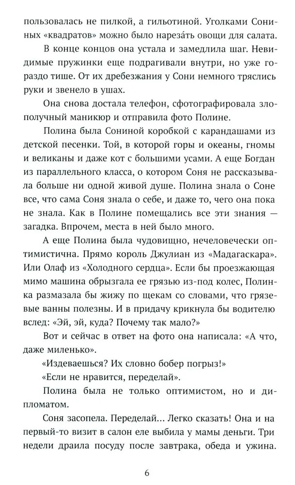 💳 Оплатить за товар можно при получении 🇰🇿 Есть бесплатная доставка по Казахстану от 1 дня 🎁 Копите бонусы с каждой покупки Шестнадцатилетняя Соня в результате несчастного случая лишается руки. Ей предстоит заново выстроить отношения с окружающими, попутно пытаясь разгрести целую гору навалившихся проблем. Что делать, если старый друг внезапно признается в любви, мама собралась выходить замуж, а лучшая подруга перестает с тобой общаться? Соне придется научиться принимать свою изменившуюся внешность и решить, что ей на самом деле нужно. |