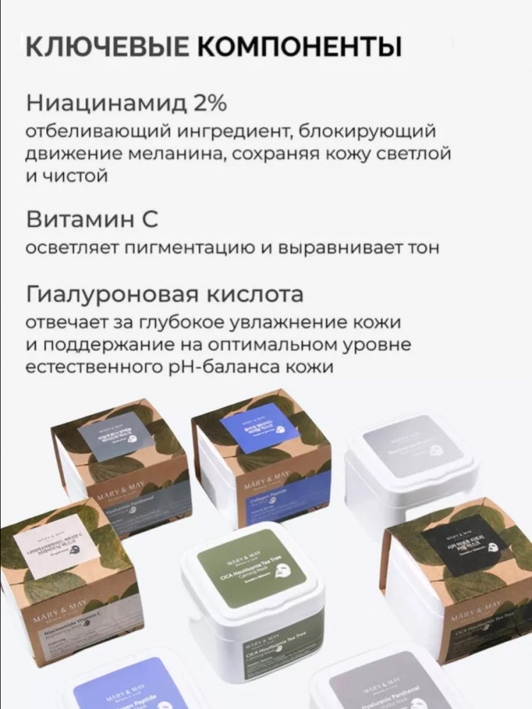 Mary&May Набор масок для лица с ниацинамидом и витамином С осветляющих «Niacinamide Vitamin C Brightening Mask»