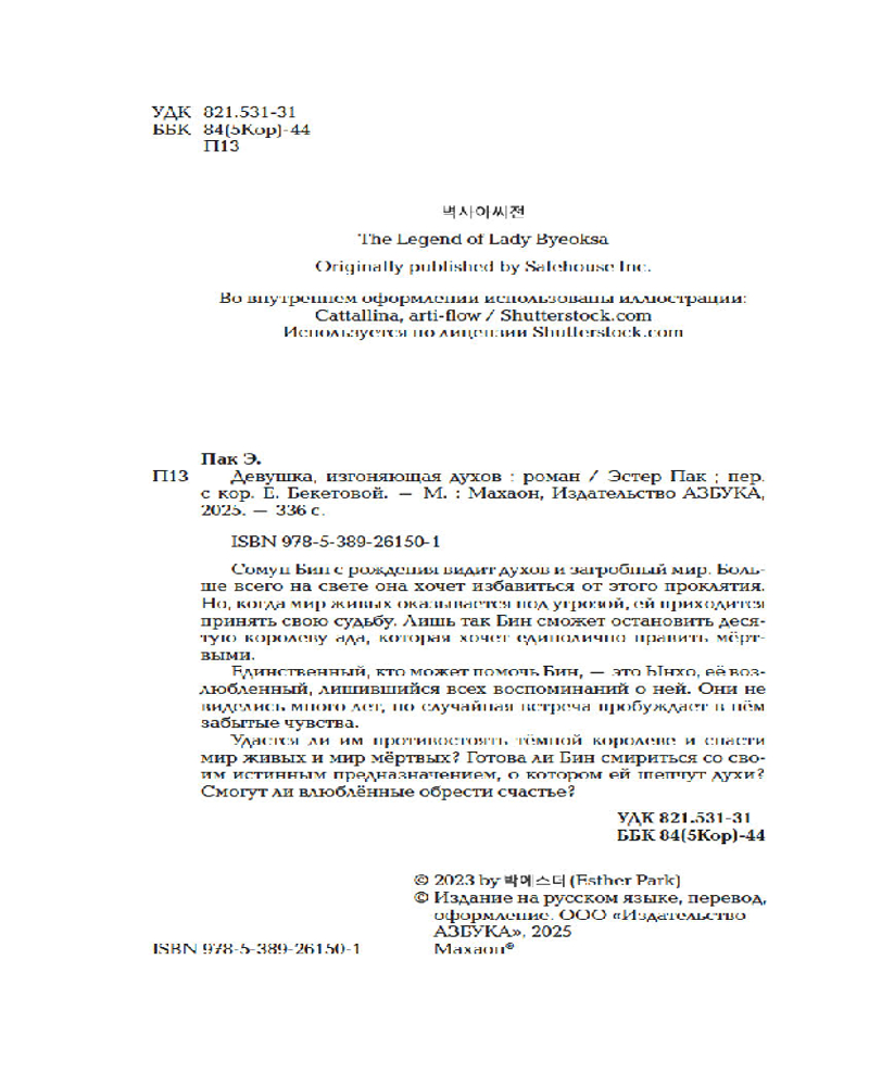 💳 Оплатить за товар можно при получении 🇰🇿 Есть бесплатная доставка по Казахстану от 1 дня 🎁 Копите бонусы с каждой покупки Серия: Сенсация БукТок. О чем молчит река Сомун Бин видит загробный мир и слышит голоса призраков. Из-за этого проклятого дара она теряет семью и отказывается от любви. Бин посвящает жизнь одной цели — изгнать как можно больше духов, чтобы изменить свою судьбу. Но надвигающаяся на мир живых и мир мертвых беда не только меняет ее планы, но и сталкивает с бывшим возлюбленным Ынхо, который совершенно ее не помнит. Он единственный, кто может помочь Бин остановить десятую королеву ада, жаждущую захватить власть в загробном мире. Сможет ли Ынхо вернуть утраченные воспоминания и забытые чувства? И на что придётся пойти Бин, чтобы победить коварное зло?.. |