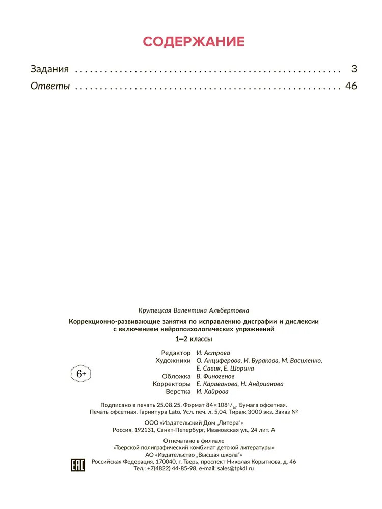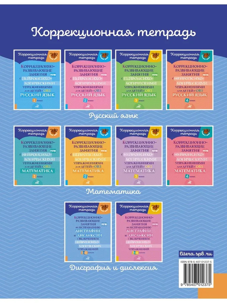 💳 Оплатить за товар можно при получении 🇰🇿 Есть бесплатная доставка по Казахстану от 1 дня 🎁 Копите бонусы с каждой покупки Серия: Коррекционная тетрадь Тренажёр адресован логопедам и заботливым родителям младших школьников, работающим с детьми над устранением дисграфии и дислексии. Он подготовлен с учётом возрастных особенностей и поможет не только отработать и закрепить важные навыки письма и чтения, но и развить зрительно-моторную координацию ребёнка, внимание, память и речь. Задания и упражнения сопровождаются приёмами нейропсихологической коррекции — методики, с помощью которой у детей повышается работоспособность, снижается усталость, формируется самоконтроль. |