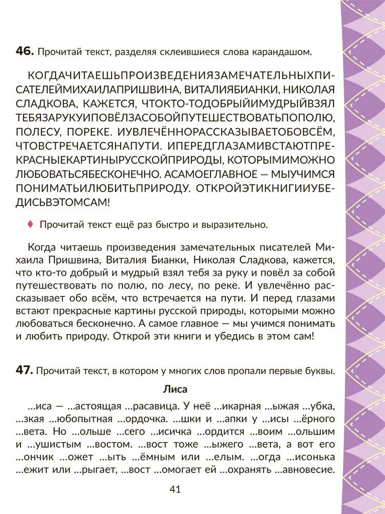 💳 Оплатить за товар можно при получении 🇰🇿 Есть бесплатная доставка по Казахстану от 1 дня 🎁 Копите бонусы с каждой покупки Серия: Коррекционная тетрадь Тренажёр адресован логопедам и заботливым родителям младших школьников, работающим с детьми над устранением дисграфии и дислексии. Он подготовлен с учётом возрастных особенностей и поможет не только отработать и закрепить важные навыки письма и чтения, но и развить зрительно-моторную координацию ребёнка, внимание, память и речь. Задания и упражнения сопровождаются приёмами нейропсихологической коррекции — методики, с помощью которой у детей повышается работоспособность, снижается усталость, формируется самоконтроль. |
