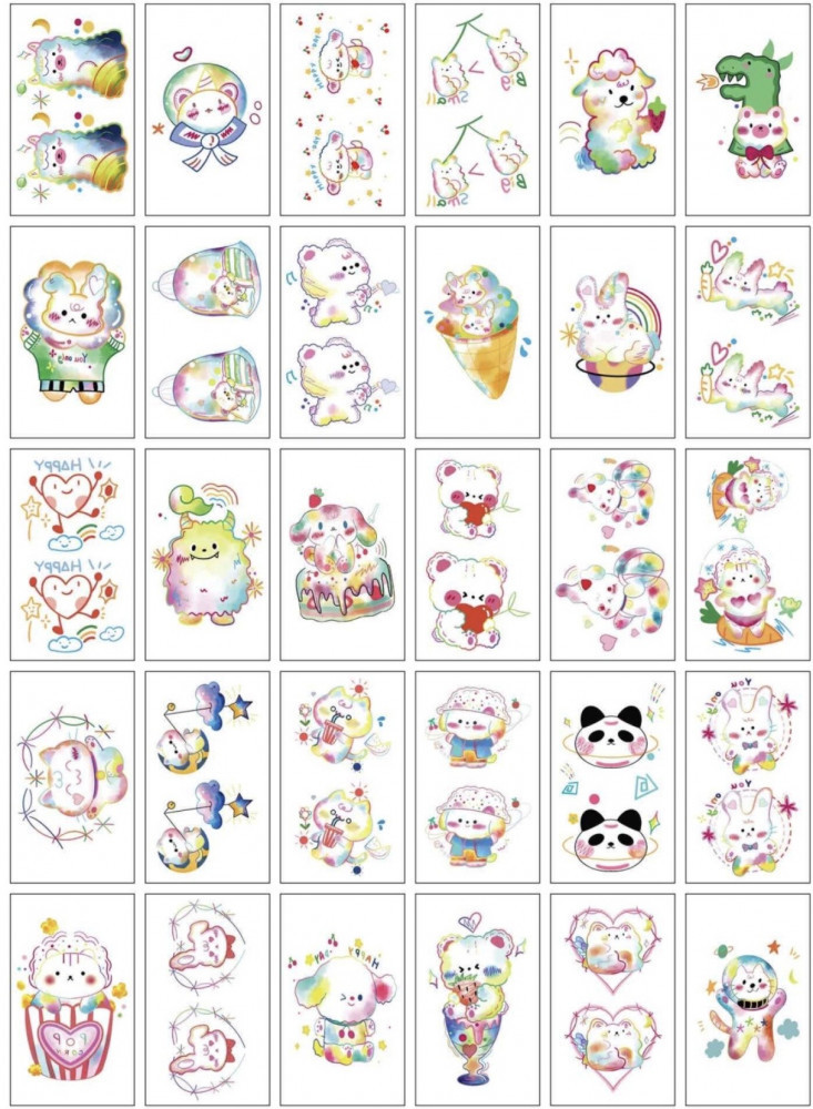 💳 Оплатить за товар можно при получении 🇰🇿 Есть бесплатная доставка по Казахстану от 1 дня 🎁 Копите бонусы с каждой покупки Набор детских временных татуировок в милом kawaii-стиле. В коллекции представлены забавные зверушки, сердечки, звездочки, фрукты, мороженое, радуги, надписи и мультяшные персонажи. Яркие цвета и простые формы делают тату привлекательными и безопасными для детей. Легко наносятся с помощью воды, выглядят аккуратно и держатся до нескольких дней. Подходят для праздников, игр, фотосессий, подарков и повседневного весёлого образа. Отличный вариант для детей и подростков. |