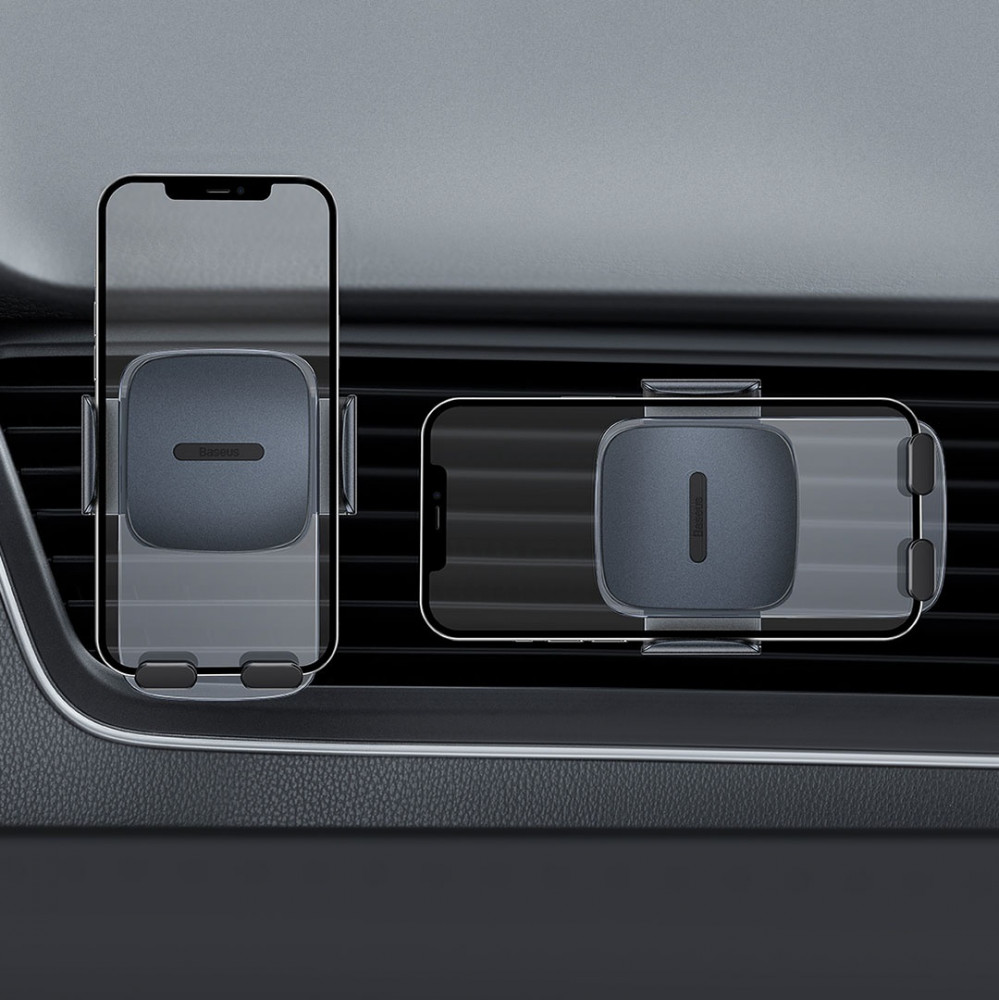 Автомобильный держатель Baseus позволяет удобно расположить телефон во время вождения. Благодаря использованию специального механизма губки зажимаются на телефоне тихо и плавно. Смартфон освобождается из держателя с помощью встроенной кнопки — все одной рукой! Ширина губок держателя составляет от 6,3 до 8,7 см, благодаря чему он может вместить практически любой смартфон, представленный на рынке.
