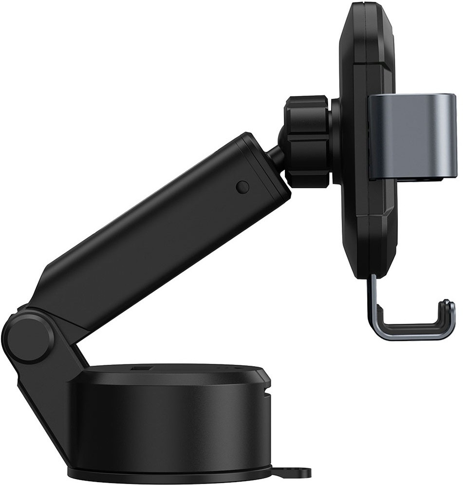 Благодаря специальному механизму телефон устанавливается и фиксируется одним движением. Телефон зажимается по бокам за счет собственного веса: в держателе он надавливает на нижнюю часть, тем самым приводя в движение два боковых крепления, которые и зажимают телефон по бокам.