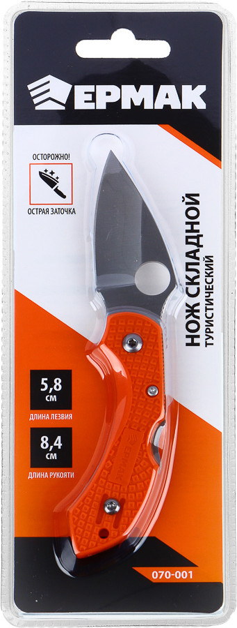 ЕРМАК Нож туристический складнойВ данный момент этот товар отсутствует в продаже. Возможно, у нас найдется аналогичный или похожий товар здесь. Нож туристический складной Ермак с общей длиной 14.3 см и длиной клинка 6.8 см выполнен из износостойкой нержавеющей стали и станет незаменимым инструментом в туристических походах, поездках и во время отдыха на природе. Подходит для нарезки продуктов, проведения мелких ремонтных работ, обрезки небольших сучьев. Не подвержен коррозии и имеет защитное покрытие на клинке. Эргономичная рукоятка удобно ложится в руку и не выскальзывает в процессе работы. Имеет стильный дизайн и острую заводскую заточку. |