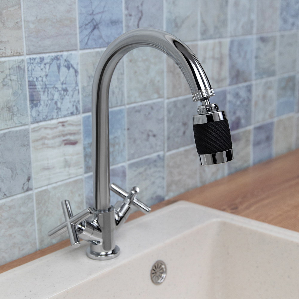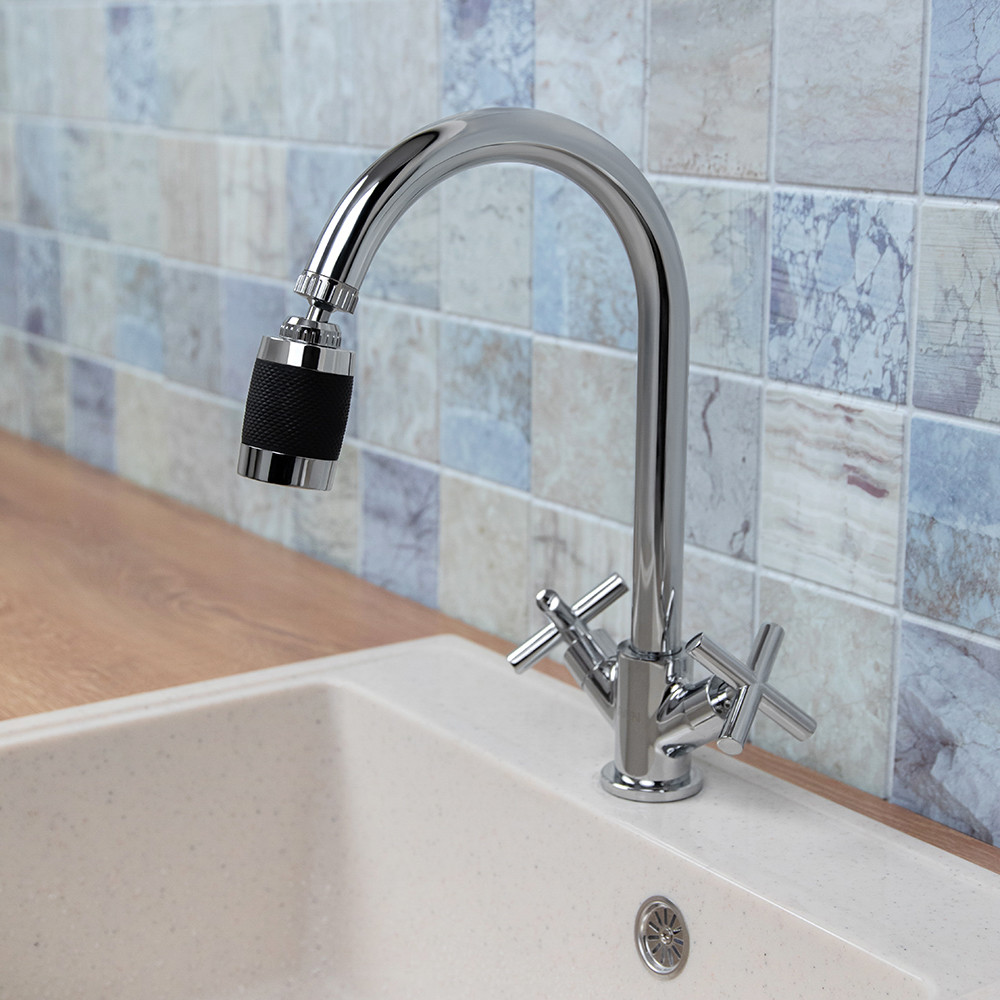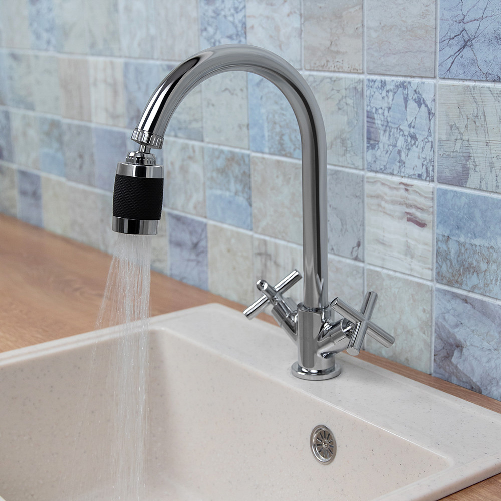Аэратор-насадка для смесителя с фильтромВ данный момент этот товар отсутствует в продаже. Возможно, у нас найдется аналогичный или похожий товар здесь. Аэратор-насадка для смесителя с фильтром с черной антискользящей накладкой позволит получить комфортный напор воды за счет насыщения ее воздухом. Аэратор рассекает струю на большое количество потоков, образуя объемный поток с равномерным давлением и без брызг. Работает в трех режимах: струя, дождь и смешанный. Режим струи удобен, чтобы набрать воду в чайник или кастрюлю, а дождь и смешанный идеальны для мытья посуды, овощей и фруктов. Встроенный фильтр эффективно очищает воду. Гибкая головка движется во все стороны, позволяя настроить поток под любым углом. Прочные материалы не подвержены коррозии и устойчивы к резким перепадам давления и температуры воды. Универсальный дизайн впишется в интерьер любой кухни и будет гармонично смотреться на смесителе с хромовым покрытием. Установка не требует специальных инструментов. |