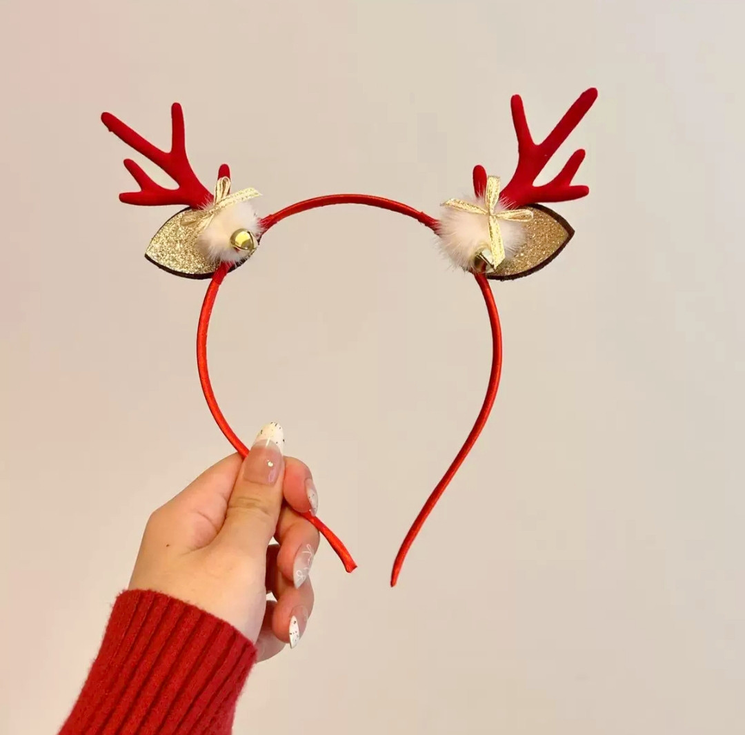 Очаровательный новогодний ободок с рожками оленя и бубенчиками — добавит волшебства вашим праздничным фото! Классический красный ободок в стиле «новогодний олень»: яркие красные рожки, милые золотые ушки, бубенчики и праздничный декор. Лёгкий, удобный и супер фотогеничный, идеально для создания праздничного настроения!