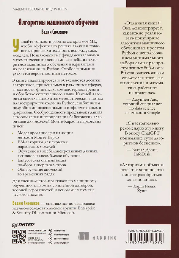 💳 Оплатить за товар можно при получении 🇰🇿 Есть бесплатная доставка по Казахстану от 1 дня 🎁 Копите бонусы с каждой покупки Серия: Библиотека программиста Узнайте тонкости работы алгоритмов ML, чтобы эффективно решать задачи и повышать производительность используемых моделей. Познакомьтесь с фундаментальными математическими основами важнейших алгоритмов машинного обучения и вариантами их реализации на Python. Особое внимание уделяется вероятностным методам. |