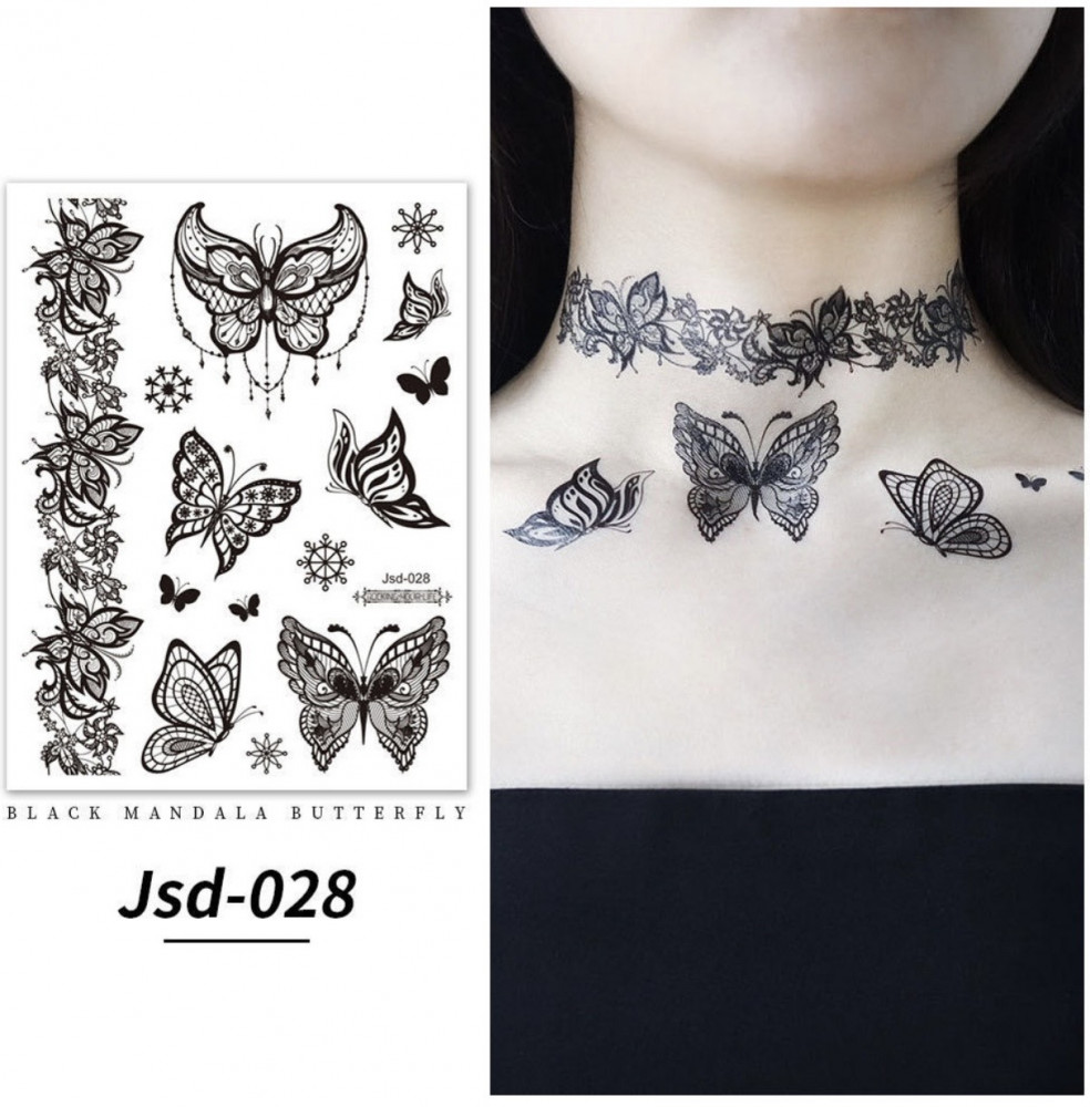 Набор временных татуировокВ данный момент этот товар отсутствует в продаже. Возможно, у нас найдется аналогичный или похожий товар здесь. Временные переводные тату с изящными бабочками и кружевными орнаментами. Эффектное чёрное тату подчёркивает шею, зону декольте, ключицы и плечи, создавая образ стильного чокера или утончённого украшения. Тату легко наносится с помощью воды, выглядит как настоящее и держится до нескольких дней. Подходит для фотосессий, вечеринок, фестивалей и создания акцентного образа без боли и навсегда. |
