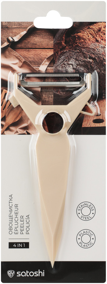 💳 Оплатить за товар можно при получении 🇰🇿 Есть бесплатная доставка по Казахстану от 1 дня 🎁 Копите бонусы с каждой покупки Овощечистка Satoshi 4 в 1, 15×7 см — это практичное и многофункциональное приспособление для аккуратной очистки овощей, а также для тонкой нарезки, декорирования и удаления глазков из картофеля. Плавающее лезвие снимает тонкий слой кожуры с яблок, моркови, картофеля без необходимости сильного нажима. Пластиковый корпус не трескается, устойчив к деформации. Острое лезвие из нержавеющей стали не требует заточки. |