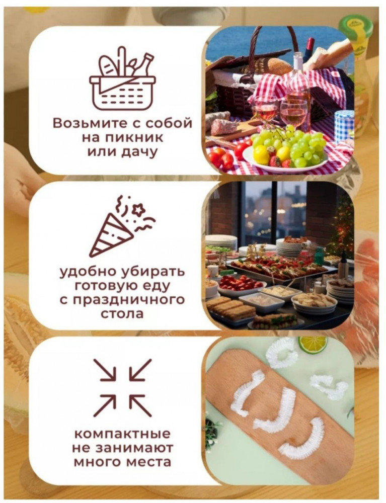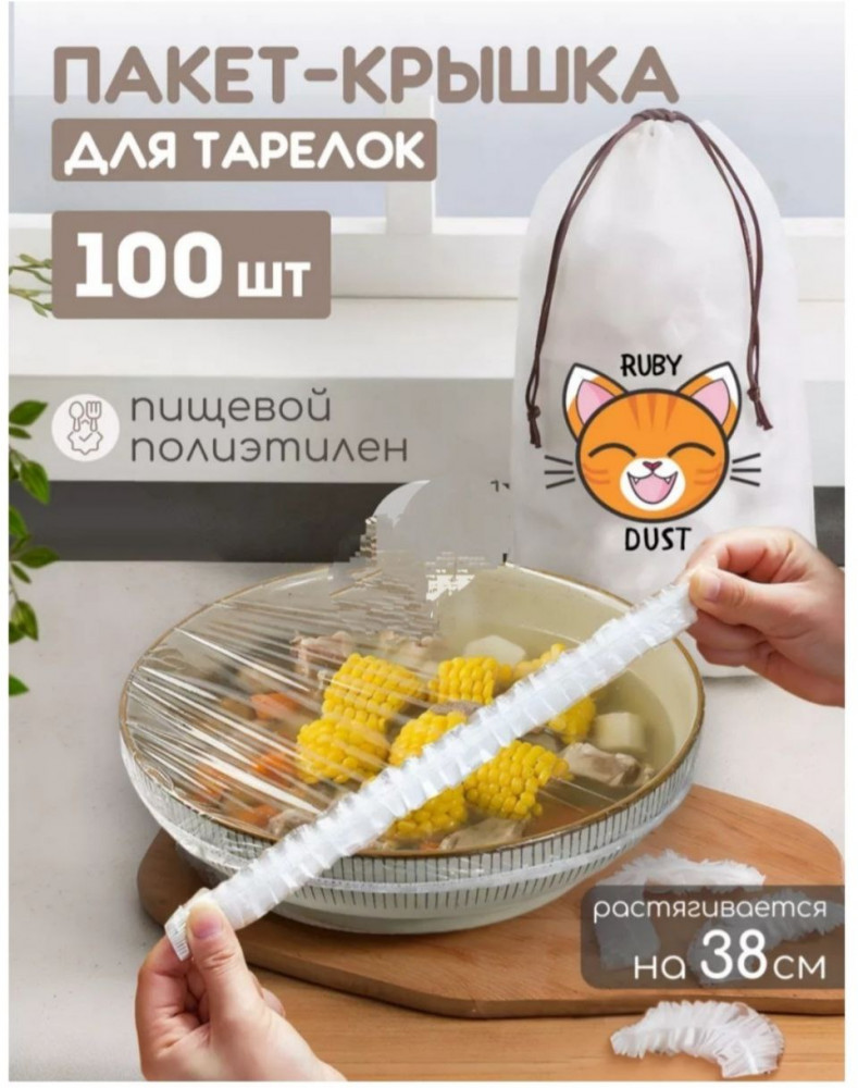 💳 Оплатить за товар можно при получении 🇰🇿 Есть бесплатная доставка по Казахстану от 1 дня 🎁 Копите бонусы с каждой покупки Набор одноразовых пищевых крышек-пакетов на резинке — удобное и гигиеничное решение для хранения продуктов. Крышки легко надеваются на тарелки, миски, чашки, кастрюли и другие ёмкости, плотно фиксируются за счёт эластичной резинки и защищают еду от пыли, запахов и заветривания. |