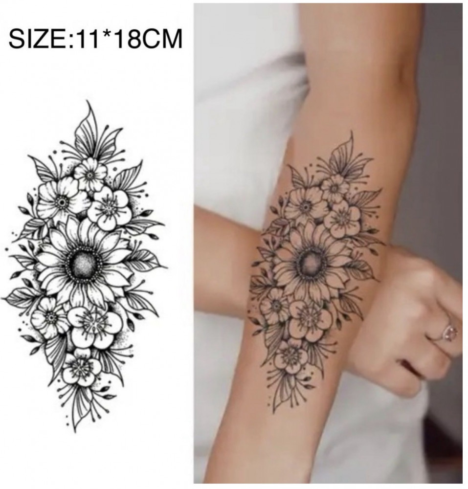 💳 Оплатить за товар можно при получении 🇰🇿 Есть бесплатная доставка по Казахстану от 1 дня 🎁 Копите бонусы с каждой покупки Временная переводная татуировка с изящной цветочной композицией в чёрно-белом графическом стиле. Тонкие линии и аккуратная детализация создают эффект настоящего тату, подчёркивая женственность и элегантность образа. Идеально смотрится на плече, предплечье, ключице или спине. Легко наносится с помощью воды, комфортна для кожи, держится несколько дней и смывается без следов. |