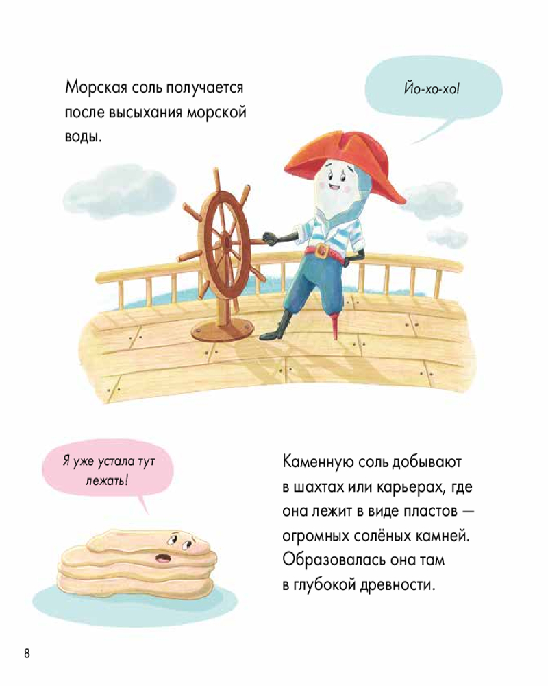 💳 Оплатить за товар можно при получении 🇰🇿 Есть бесплатная доставка по Казахстану от 1 дня 🎁 Копите бонусы с каждой покупки Серия: Я знаю, что я ем Катя с родителями впервые отдыхает на море. Какое же оно огромное, синее и... солёное! Кто же его посолил? Родители расскажут Кате, что такое соль и откуда она берётся, какой бывает, чем полезна для нашего организма и почему, при всей пользе, с солью в еде лучше не перебарщивать. Катя также узнает, как соль используют в кулинарии, чем её можно заменить при приготовлении блюд, и даже о том, как вырастить настоящий кристалл соли у себя дома. А ещё научится готовить полезные и вкусные блюда — с солью и без неё. |