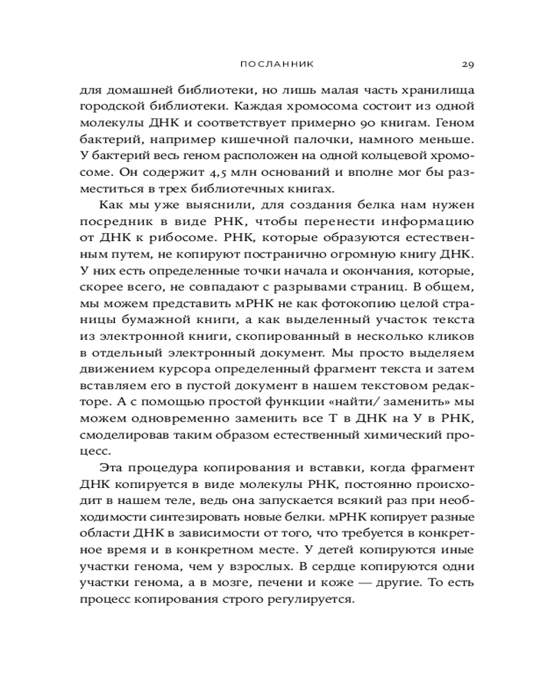 💳 Оплатить за товар можно при получении 🇰🇿 Есть бесплатная доставка по Казахстану от 1 дня 🎁 Копите бонусы с каждой покупки Долгое время считалось, что РНК — это курьер или посредник, ответственный за перенос информации от ДНК к белкам. Но последние научные данные показали, что РНК играет ключевую роль в жизни клетки и процессе эволюции, регуляции генов, борьбе с болезнями и создании новых медицинских технологий. Исследования РНК могут многое прояснить в вопросе возникновения жизни на Земле и позволят улучшить и даже продлить человеческое существование за пределы нынешних природных ограничений. Обо всем этом рассказывает ведущий в мире специалист в этой области, автор и свидетель революционных открытий, связанных с РНК. |
