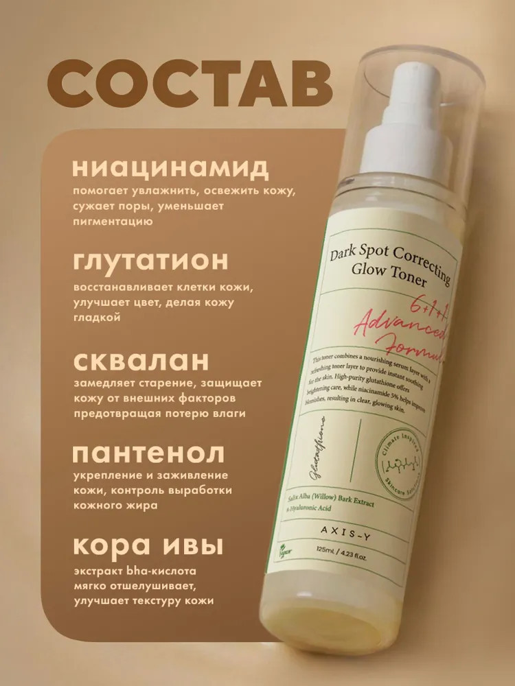 Axis-Y Тонер-мист для лица от постакне осветляющий «Dark Spot Correcting Glow Toner»