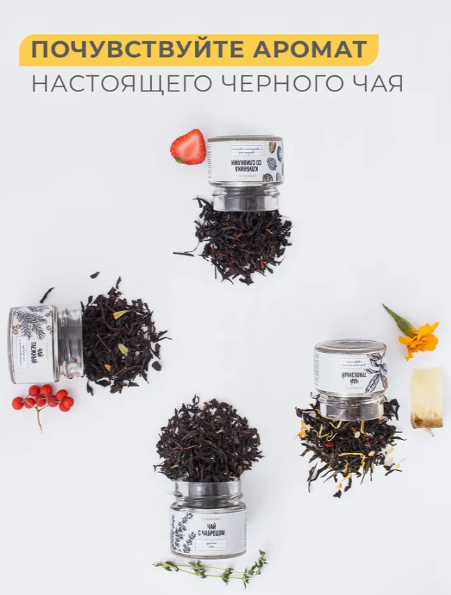 Подарочный набор из двенадцатью видов черного чая с оригинальными добавками — идеальный презент для любителей разнообразных чайных вкусов. В каждой баночке — особая композиция из натуральных ингредиентов: фруктовые, пряные и цветочные нотки подарят незабываемое удовольствие от каждой чашки. Позвольте себе и близким открыть новые грани классического черного чая.