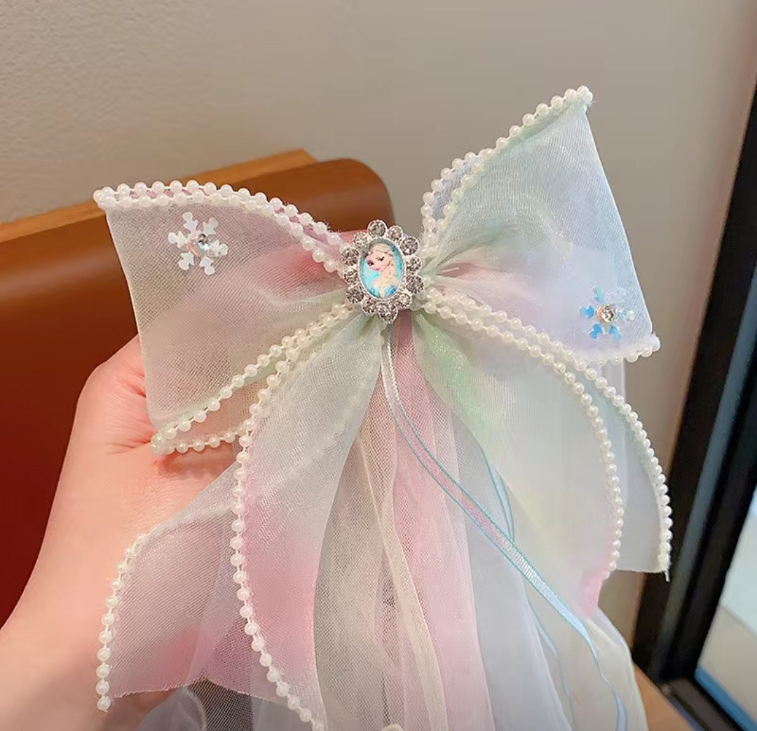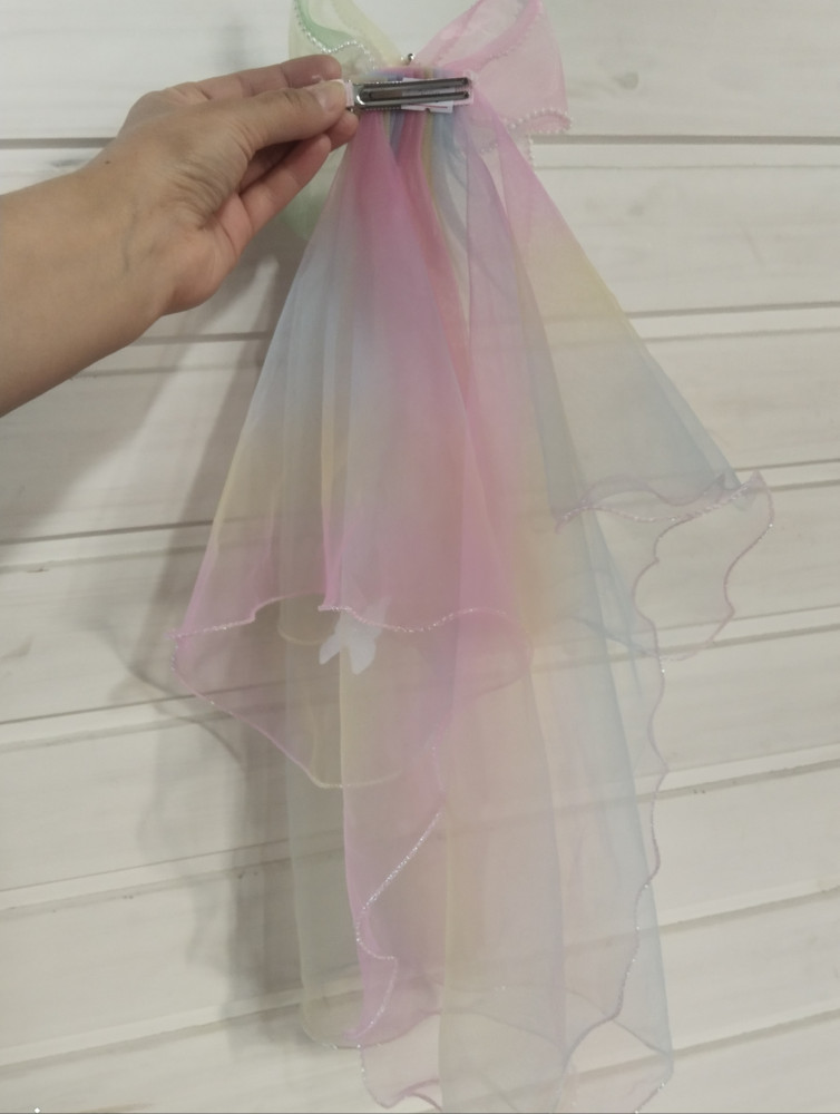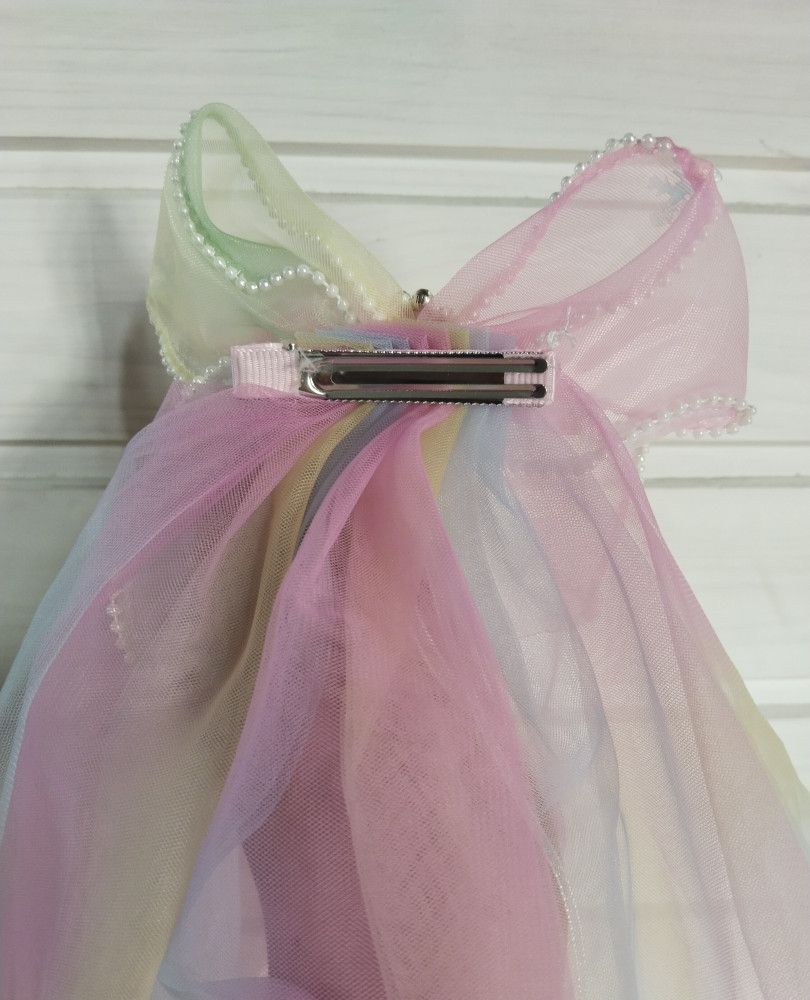 Заколка-бант с радужной фатой