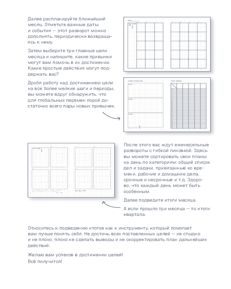💳 Оплатить за товар можно при получении 🇰🇿 Есть бесплатная доставка по Казахстану от 1 дня 🎁 Копите бонусы с каждой покупки Вы когда-нибудь задумывались о том, почему одни люди легко достигают своих целей, а другие постоянно откладывают все на потом? Ответ кроется в осознанности и планировании. Именно в этом могут помочь ежедневники. Но, подыскивая подходящий, мы выбираем не просто блокнот для записей, а инструмент, с помощью которого сможем четко структурировать свои задачи, чтобы достигать большего, но при этом не выгорать в погоне за желаемым, не надрываться от груза забот и плодотворно заниматься делом, успевая полноценно жить. Именно для этих целей Юлия Головина, автор позитивного ежедневника Visual Planner, создала новый ежедневник осознанности, уникальный «О’планнер. Фокус. Гибкость. Мотивация». |