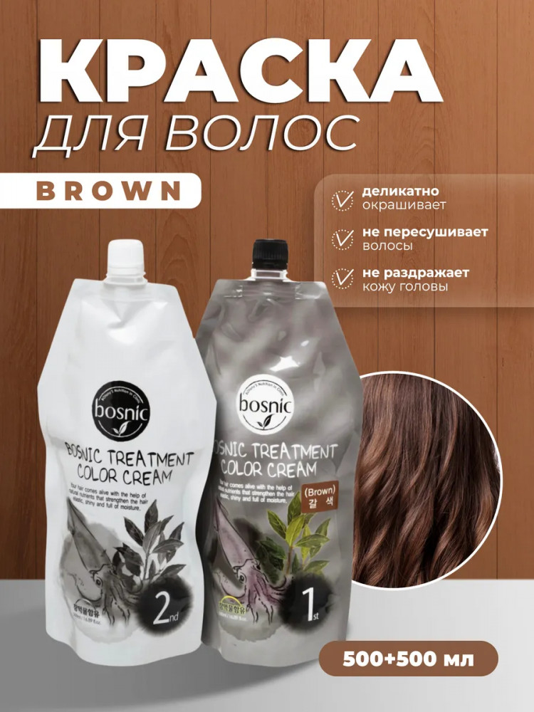Bosnic Краска для волос «Treatment Color Cream», оттенок Brown