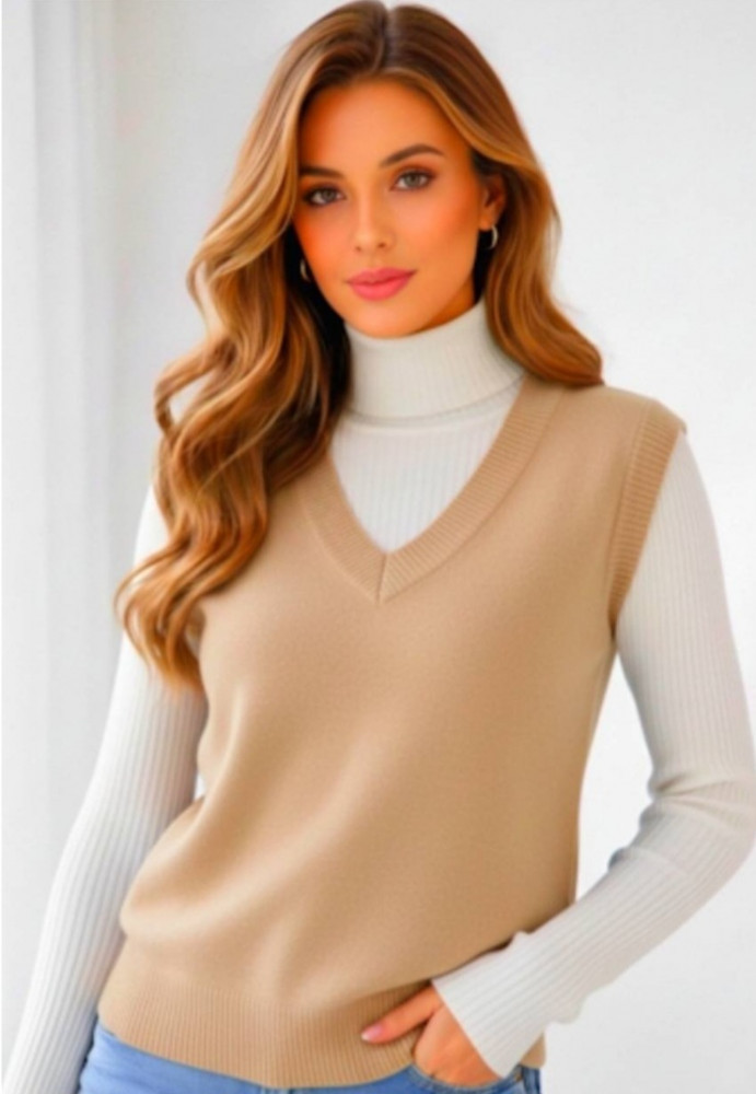 Этот вязаный жилет — идеальная база для вашего гардероба, сочетающая в себе классический стиль и современный комфорт. V-образный вырез и благородный бежевый оттенок делают его универсальным решением как для строгого офисного дресс-кода, так и для расслабленных образов выходного дня. Благодаря продуманному составу жилет дарит мягкость и тепло, сохраняя при этом безупречный вид на протяжении долгого времени.
