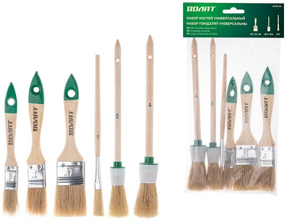 Волат Набор кистейВ данный момент этот товар отсутствует в продаже. Возможно, у нас найдется аналогичный или похожий товар здесь. Назначение: для малярных работ, нанесения лаков и масляных красок. Состав набора: плоские кисти 20 мм (34), 25 мм (1), 35 мм (1.5), круглые № 2, № 4, корректирующая кисть № 10. Тип щетины: натуральная светлая щетина. Рукоять: деревянная. Упаковка: индивидуальный пакет с картонным подвесом и отверстием под крюк. |