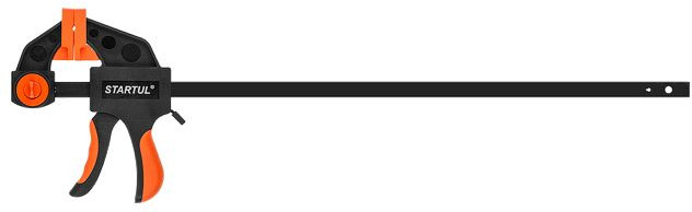 Рабочие губки: снабжены мягкими накладками для предотвращения повреждений обрабатываемых предметов. Особенность: опорная губка перемещается и фиксируется по всей длине направляющей при помощи рукоятки, а также может переставляться на другой конец направляющей, что позволяет использовать струбцину «на разжим».