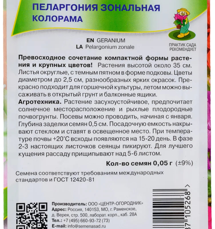 Поиск Семена пеларгонии «Колорама зональная»В данный момент этот товар отсутствует в продаже. Возможно, у нас найдется аналогичный или похожий товар здесь. Семена пеларгонии (герани) «Колорама» — многолетнее растение, выращивается, как комнатное. Растение компактное, с крупными цветами, собранными в шарообразные кисти. Цветки диаметром до 2,5 сантиметров, разнообразных окрасок — от бледных до ярких оттенков. Пеларгония зональная предпочитает солнечное месторасположение и рыхлую, плодородную почву. Посев семян производят с января месяца. Глубина посадки семян 0,5 сантиметров. Горшок с посаженными семенами накрывают стеклом и ставят в хорошо освещённое место. Всходы появляются на 10-й день. Растение необходимо пикировать, когда у него появится 2-3 листочка. Для лучшей кустистости, рассаду прищипывают над 5-6 листом. |
