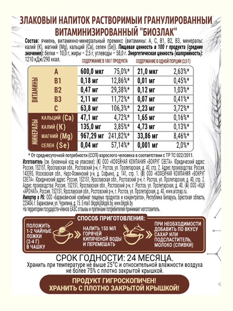 Отзывы «Напиток злаковый гранулированный «Биозлак»»
