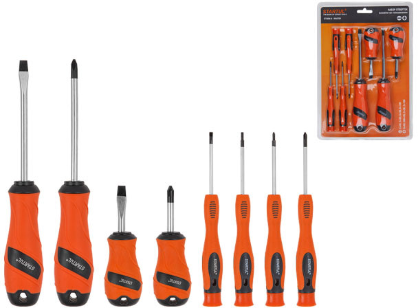 💳 Оплатить за товар можно при получении 🇰🇿 Есть бесплатная доставка по Казахстану от 1 дня 🎁 Копите бонусы с каждой покупки Назначение: универсальный набор отверток для монтажа и демонтажа резьбовых соединений, для завинчивания и отвинчивания резьбовых соединений малого размера. Комплект: PH2×100, PH2×38, PH0×50, PH000×50, SL6×100, SL6×38, SL3.0×50, SL2.0×50мм. Двухкомпонентная CRV противоскользящая рукоятка обеспечивает удобный и надежный хват. Упаковка: индивидуальный блистер с отверстием под крюк. |