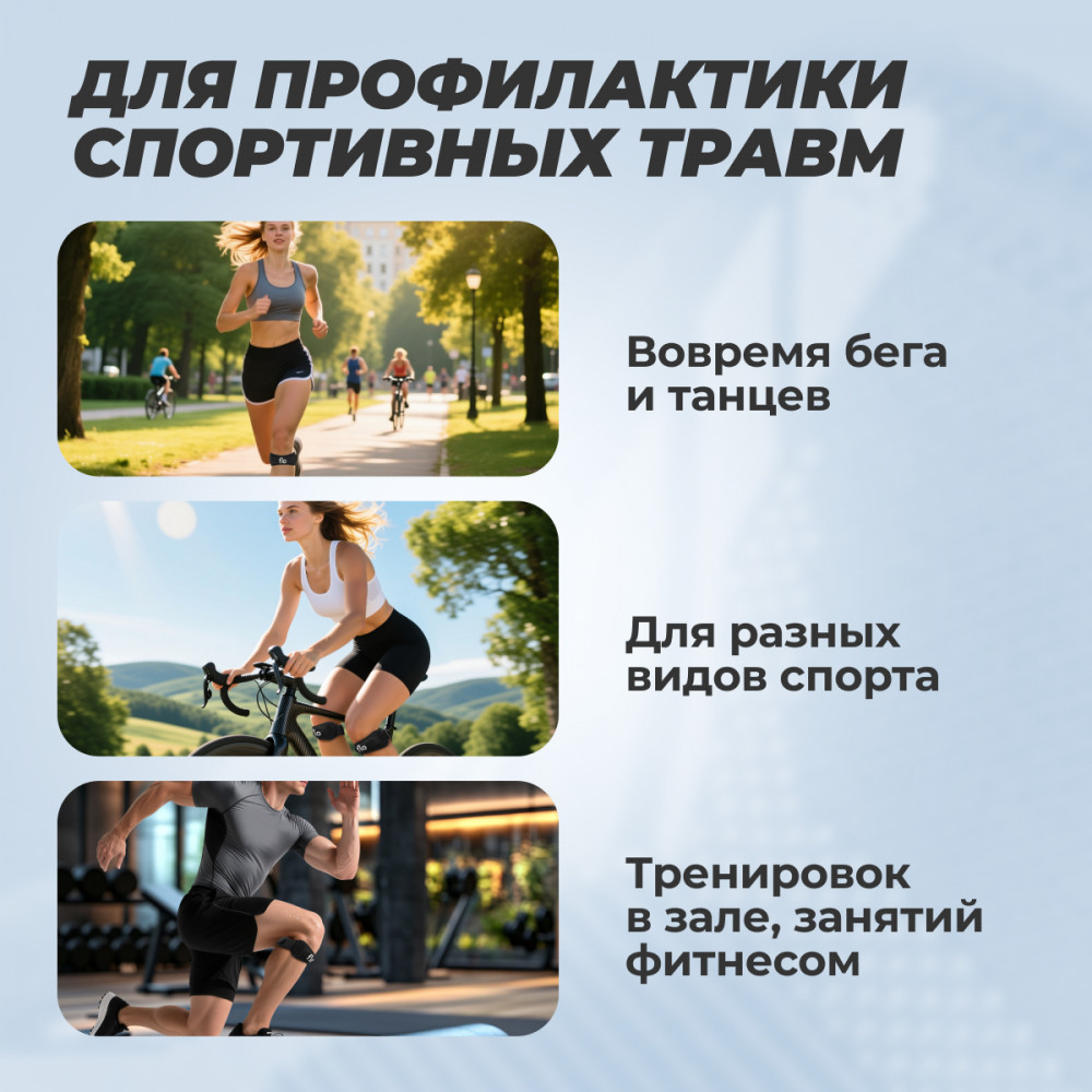 • надежная фиксация — стабилизирует связку надколенника в зоне её прикрепления, снижая риск травм при резких и нестабильных движениях;