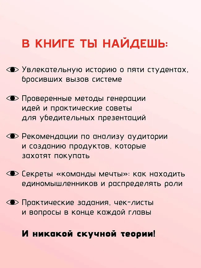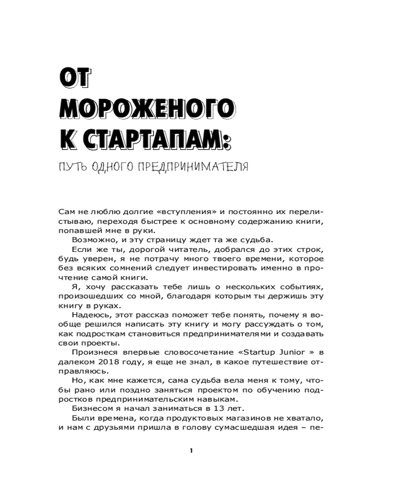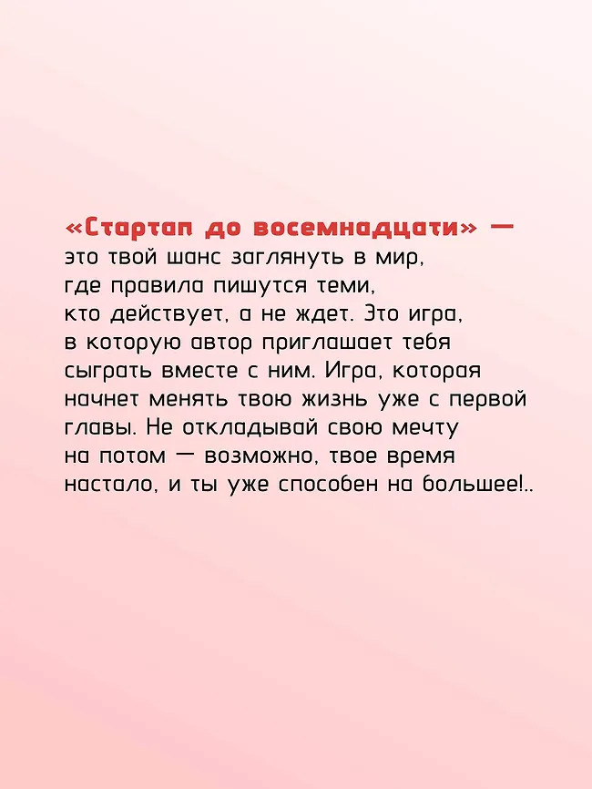 Каждая глава — это шаг к созданию реального проекта. А в конце тебя ждут практические задания, чек-листы и вопросы для самопроверки. Идеи, описанные в книге, уже помогли сотням подростков из проекта Startup Junior запустить свои первые бизнесы. Теперь твоя очередь. Начни создавать свое будущее уже сегодня. Не жди совершеннолетия — действуй! Внутри ты найдешь QR-коды на авторский видеокурс, раскрывающий методику проекта, и дополнительные материалы для самостоятельной работы.
