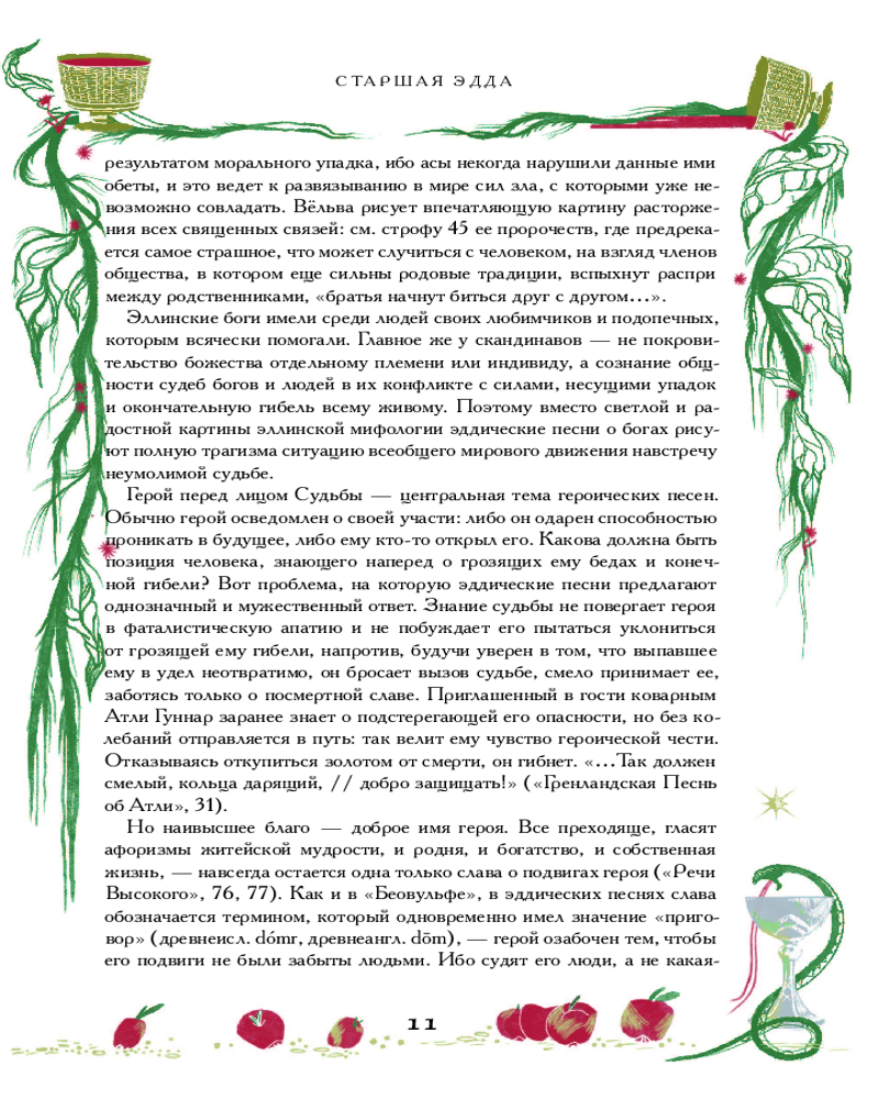 Серия: Подарочные издания. Мифология Уже слышите песню северного ветра в парусах, скрип весел и лязг мечей? Эпос «Старшая Эдда» — один из важнейших литературных памятников человечества и великая поэзия викингов со своей этикой и эстетикой. Объединяя в себе основные скандинавские мифы о богах Одине, Торе, Локи, о ясене Иггдрасиле и мировом змее Ёрмунганде, волке Фенрире и драконе Фафнире, о валькириях, карликах и героях германо-скандинавского эпоса Сигурде, Брюнхильд, Гуннаре, она является своего рода ДНК-кодом скандинавской и, шире, германской культуры, встроенным в большой организм всей западной цивилизации. Самобытные герои, сюжеты и особый, целостный и суровый мир «Эдды» вдохновляли и продолжают вдохновлять творчество со всего мира: от легендариума Джона Р.Р. Толкина и вселенной Джорджа Р.Р. Мартина до комиксов Marvel и сериала «Викинги».