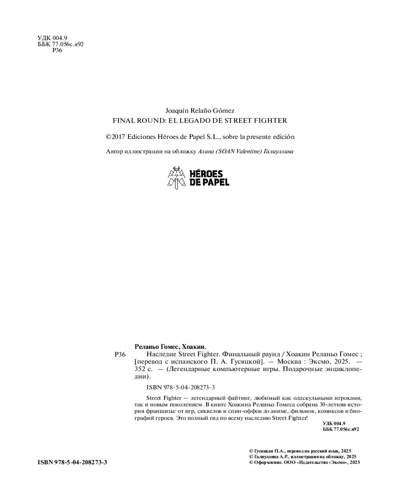 💳 Оплатить за товар можно при получении 🇰🇿 Есть бесплатная доставка по Казахстану от 1 дня 🎁 Копите бонусы с каждой покупки Серия: Легендарные компьютерные игры. Подарочные энциклопедии Street Fighter — один из самых известных файтингов, привлекающий к себе внимание своей простотой и лаконичностью. Игра притягивает не только тех, кто ностальгирует по былым временам, но и геймеров нового поколения. Чтобы рассказать историю Street Fighter и показать истинные масштабы франшизы, нужно разложить по полочкам всё, чего она достигла за свой длинный путь, усеянный сиквелами, адаптациями, ремастерами и спин-оффами, навсегда вошедшими в наследие видеоигр. |