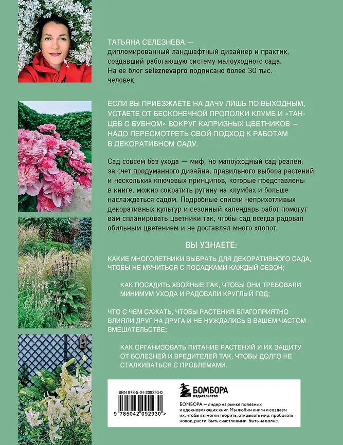💳 Оплатить за товар можно при получении 🇰🇿 Есть бесплатная доставка по Казахстану от 1 дня 🎁 Копите бонусы с каждой покупки Серия: Подарочные издания. Ландшафтный дизайн Декоративный сад совсем без ухода — миф, а вот малоуходный сад — реальность: за счёт продуманного дизайна, правильного выбора растений и нескольких ключевых принципов можно сократить рутину на клумбах и больше наслаждаться садом. Если вы наведываетесь на дачу лишь по выходным и устали от бесконечной прополки и «танцев с бубном» вокруг капризных цветников, то эта книга для вас! Она станет вашим простым и понятным планом действий. Подробные списки неприхотливых декоративных культур и сезонный календарь работ помогут вам спланировать цветники так, чтобы сад всегда радовал обильным цветением и не доставлял много хлопот. |