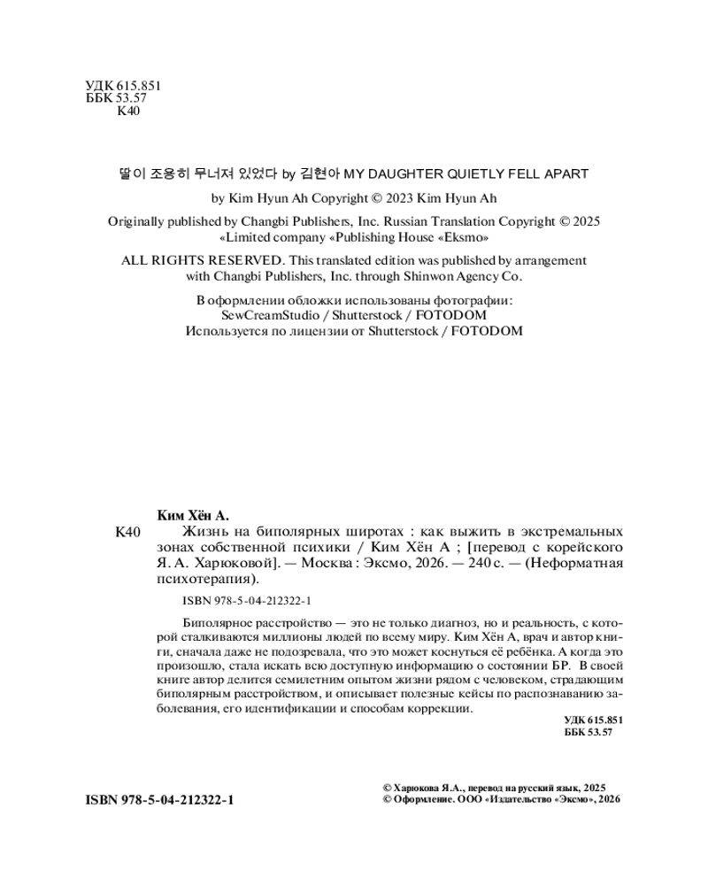 💳 Оплатить за товар можно при получении 🇰🇿 Есть бесплатная доставка по Казахстану от 1 дня 🎁 Копите бонусы с каждой покупки Серия: Неформатная психотерапия Биполярное расстройство — это не приговор, но вызов. Хёна Ким, автор книги, рассказала нам, как распознать и принять диагноз и как научиться с ним жить полной жизнью. Эта книга не просто набор фактов и советов, а личный опыт борьбы с биполярным расстройством в семье. |