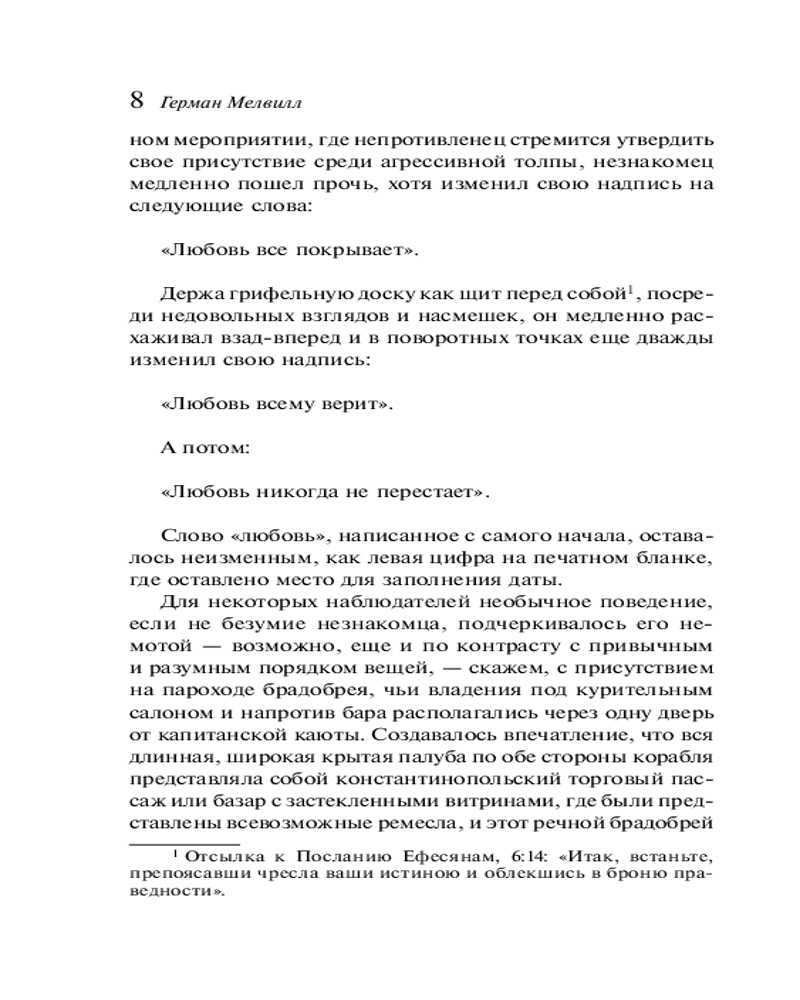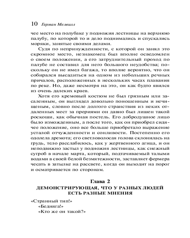 💳 Оплатить за товар можно при получении 🇰🇿 Есть бесплатная доставка по Казахстану от 1 дня 🎁 Копите бонусы с каждой покупки Серия: Магистраль. Главный тренд Сюжет романа довольно прост, но стиль и структура довольно сложные. На пароходе, плывущем по Миссисипи (Мелвилл любил использовать пароходы как метафору общества), плывёт компания самых разных обывателей. С каждым из них в разных ситуациях и сценах взаимодействует неуловимый, таинственный Обманщик. Вы становитесь свидетелем того, как «Жертва» и «Хищник» пытаются получить преимущество друг над другом. Создаётся впечатление, что персонажи нуждаются в обмане, хотят, чтобы их эксплуатировали. Обманщик через сатиру и аллегории вскрывает лицемерие общества, критикует эксплуатацию и расовое неравенство. Герман Мелвилл (1819—1891) — известный американский писатель. С 18 лет плавал юнгой на пакетботе, некоторое время работал учителем, затем оказался на китобойном судне. Не выдержав тирании сурового капитана, он сбежал. Месяц жил среди людоедов в долине Тайпи. Творческую карьеру начал с описания своей жизни в плену. |