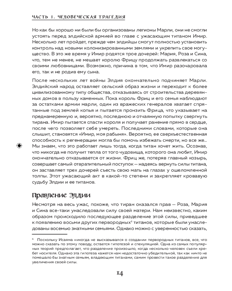 Кто из нас не сочувствовал непростой судьбе Леви, не злился на предательство Райнера, не пускал слезу над смертью Ханджи или, в конце концов, не спорил о том, каким должен быть финал грандиозной эпопеи? Постепенно «Атака титанов» стала не просто мангой о постапокалиптичном мире, выживающем под натиском человекоподобных титанов-людоедов, но и одним из столпов японской и мировой поп-культуры. Жаркие дискуссии, порожденные теми или иными главами, и энтузиазм по поводу анимационной адаптации — яркое тому доказательство.