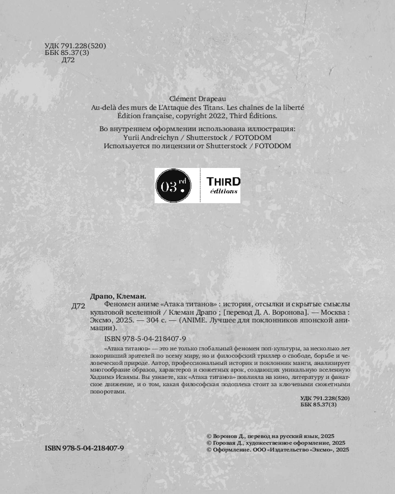 Клеман Драпо, профессиональный историк и большой поклонник творчества Исаямы, предлагает нам вновь погрузиться в историю культовой вселенной с помощью своей книги «Феномен аниме «Атака титанов»: история, отсылки и скрытые смыслы культовой вселенной» и узнать: