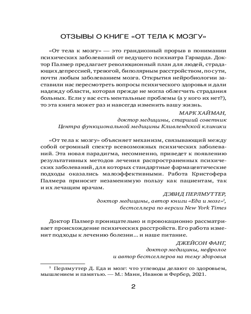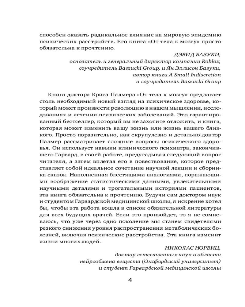 💳 Оплатить за товар можно при получении 🇰🇿 Есть бесплатная доставка по Казахстану от 1 дня 🎁 Копите бонусы с каждой покупки Серия: Плюс один здоровый человек. Книги о медицине от ведущих экспертов Психиатрия — самая закрытая и неразведанная область медицины, в которой до сих пор остается больше вопросов, чем ответов. За десятилетия исследований не найден ключ даже к главному из них: что же действительно вызывает психическое расстройство. Генетика? Гормоны и стресс? Нелюбовь родителей или детские травмы? Как одно сочетается с другим и что же является основной причиной? Перед вами первая уникальная комплексная теория происхождения ВСЕХ психических заболеваний, которая наконец ответит на эти вопросы. Кристофер Палмер, доктор медицинских наук Гарвардского университета, нашел общий механизм развития психических расстройств, даже у тех, которые, казалось бы, кардинально отличаются друг от друга. |