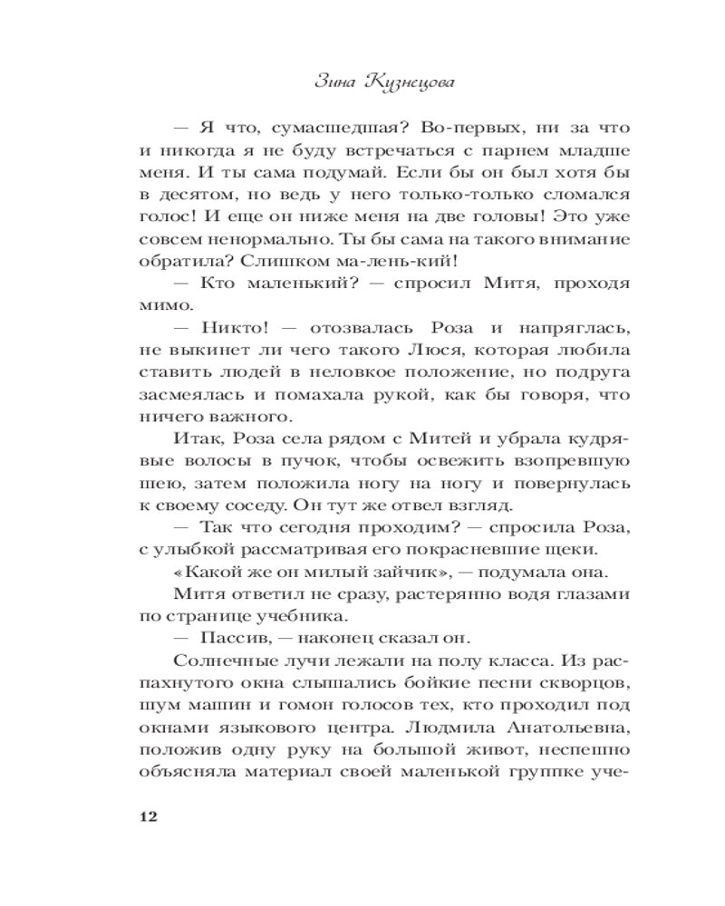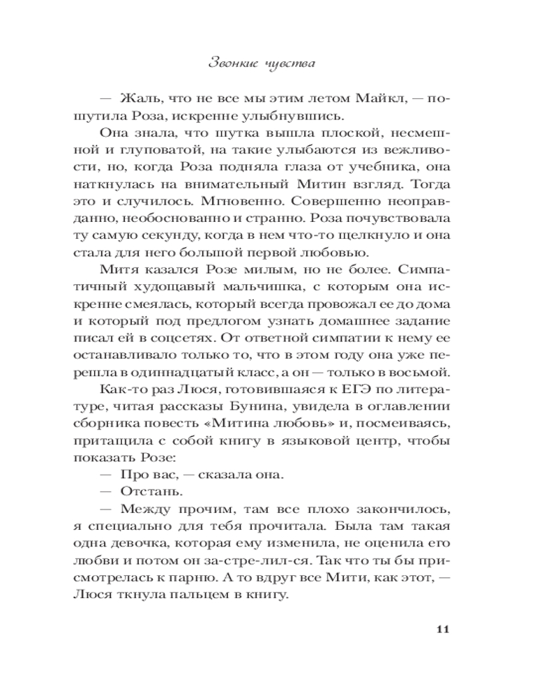 Школа закончилась, их дороги разошлись. Но вдруг, уже повзрослел и поступив в университет, в новом знакомом Роза узнает все того же мальчишку из детства. Только теперь Митя вырос, возмужал и, кажется, забыл о прежней юной влюбленности. Зачем она ему? Только любви ведь не прикажешь. И Роза вдруг ощутила, как в груди у нее зарождаются звонкие чувства. Смогут ли Митя и Роза на этот раз не упустить свою любовь?