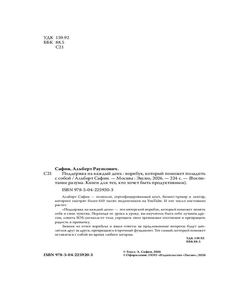 💳 Оплатить за товар можно при получении 🇰🇿 Есть бесплатная доставка по Казахстану от 1 дня 🎁 Копите бонусы с каждой покупки Серия: Воспитание разума. Книги для тех, кто хочет быть продуктивным Альберт Сафин — психолог, сертифицированный коуч, бизнес-тренер и лектор, которого смотрят более 610 тысяч подписчиков на YouTube. И это число постоянно растет. |