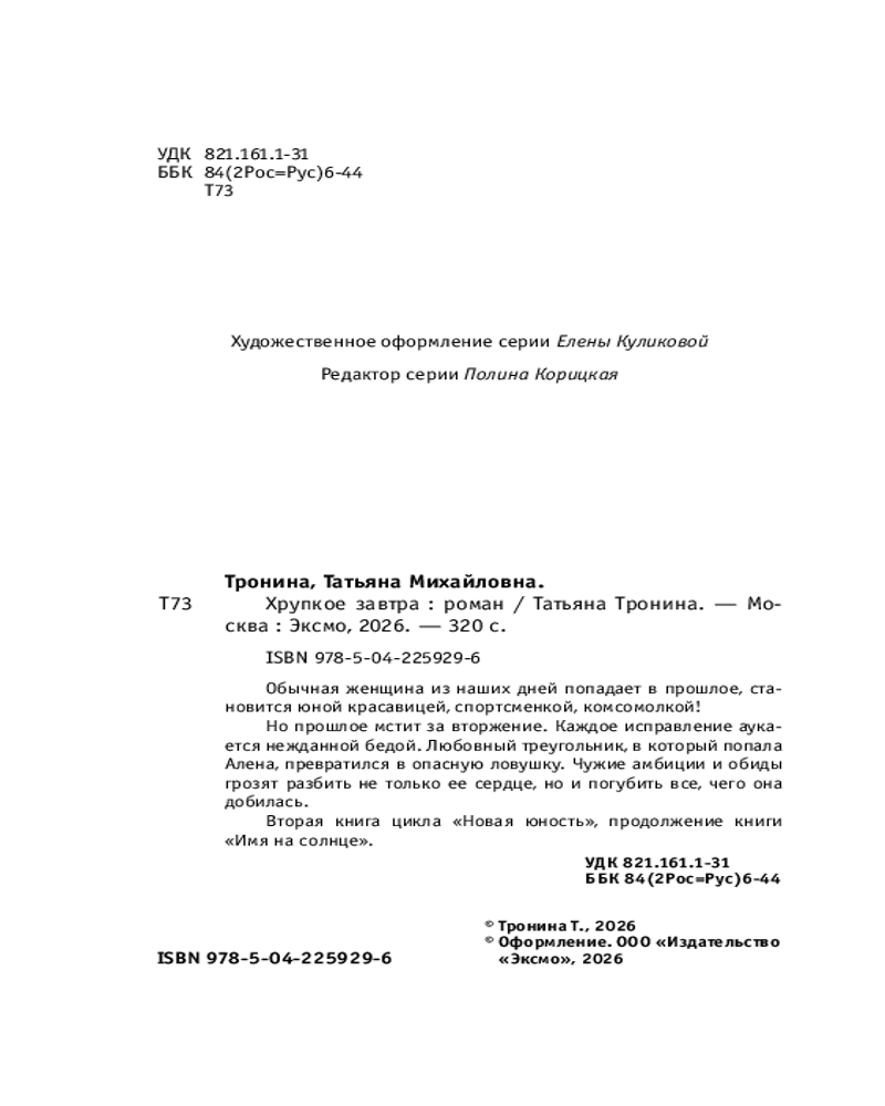 💳 Оплатить за товар можно при получении 🇰🇿 Есть бесплатная доставка по Казахстану от 1 дня 🎁 Копите бонусы с каждой покупки Серия: Нити любви. Романы Т. Трониной Продолжение невероятной и романтичной истории от Татьяны Трониной. Взрывной микс жанров и уютная, «ламповая» атмосфера прошлого! |