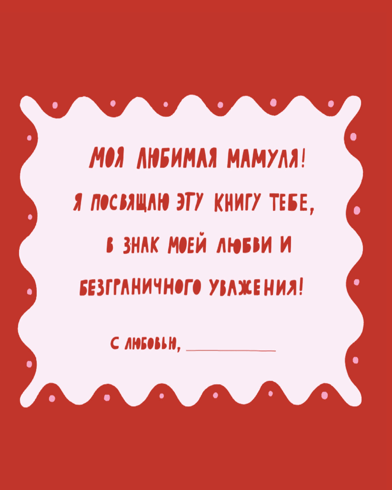 Серия: Подарки для самых любимых Самый теплый и личный подарок для вашей мамы! Это не просто книга — это место для вашей общей истории. Здесь нет готового текста, потому что главная героиня — ваша мама, а автор — вы. На 64 страницах — вопросы, творческие задания и уютные развороты, которые помогут рассказать ей все, что обычно остается несказанным. Вы расскажете маме, за что ее любите, какие у нее «суперсилы», какие воспоминания самые теплые. Вставите ваши любимые фотографии, вспомните смешные истории и шутки, опишете традиции, рецепты, песни и мечты. Письма, признания, фотографии «тогда и сейчас» — все это станет дорогим сердцу напоминанием о близости и поддержке. Книга будет жить и меняться, потому что ее можно дополнять и после вручения.