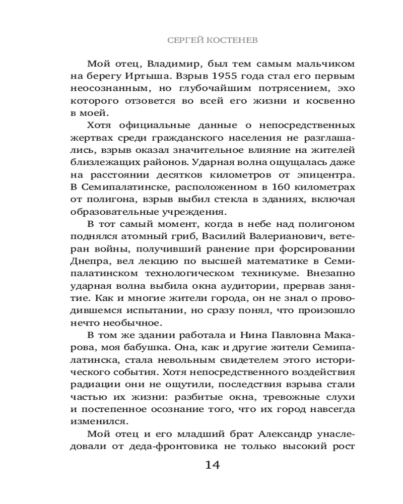 | Сергей Костенев — хирург-офтальмолог, доктор медицинских наук, член Европейского и Американского общества катарактальных и рефракционных хирургов, многократно выступал на международных конференциях в Лос-Анжелесе, Вашингтоне, Копенгагене, Лондоне, Берлине, Милане, Амстердаме и других городах. Является автором 45 патентов и более 100 научных публикаций. Выполнил более 20 тысяч офтальмологических операций. Награжден почетной грамотой Министерства здравоохранения Российской Федерации «За заслуги... |