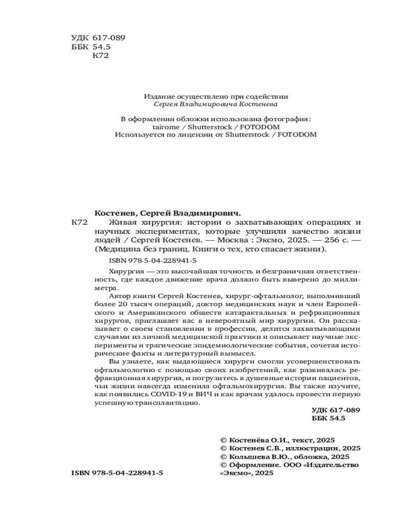 💳 Оплатить за товар можно при получении 🇰🇿 Есть бесплатная доставка по Казахстану от 1 дня 🎁 Копите бонусы с каждой покупки Серия: Медицина без границ. Книги о тех, кто спасает жизни Профессия хирурга самая сложная в медицинском мире, она требует высочайшей точности, ответственности и глубоких знаний. Одна из самых невероятных разновидностей — офтальмохирургия. Врачи этой специальности возвращают пациентам возможность видеть мир со всеми его красками, каждое их движение должно быть выверено до миллиметра. |