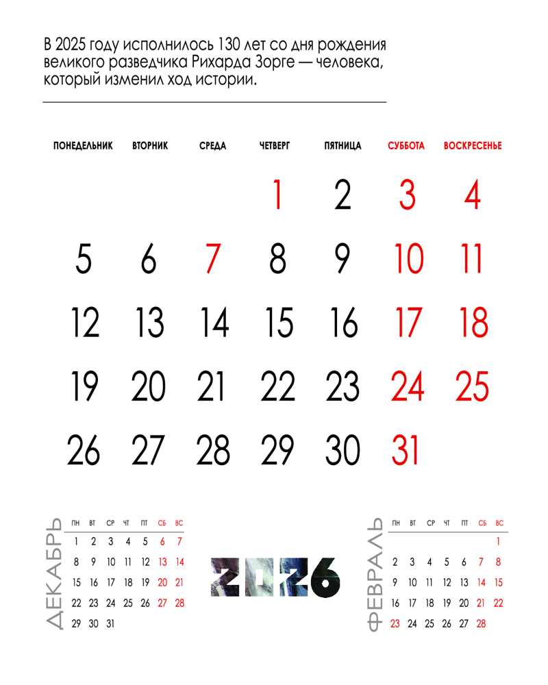 Зорге. Легенда военной разведки. Календарь настенный на 2026 год-20% +30